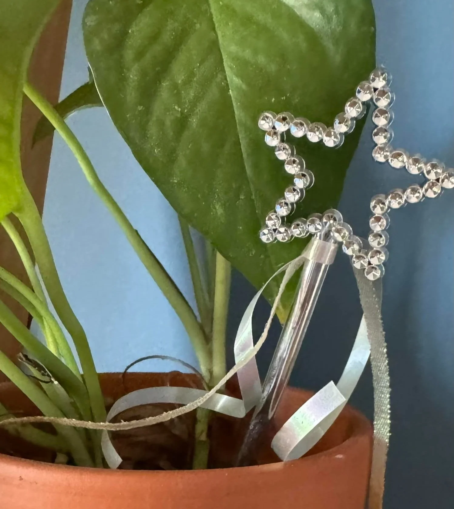 I received it from my coach awhile back and I keep it right above my desk in this plant (given to me by my dear friend when I transitioned out of massage therapy and into my coaching business ).